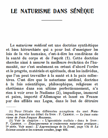 Sénèque a fait ce que le vitalisme est aujourd'hui pour le Naturopathe